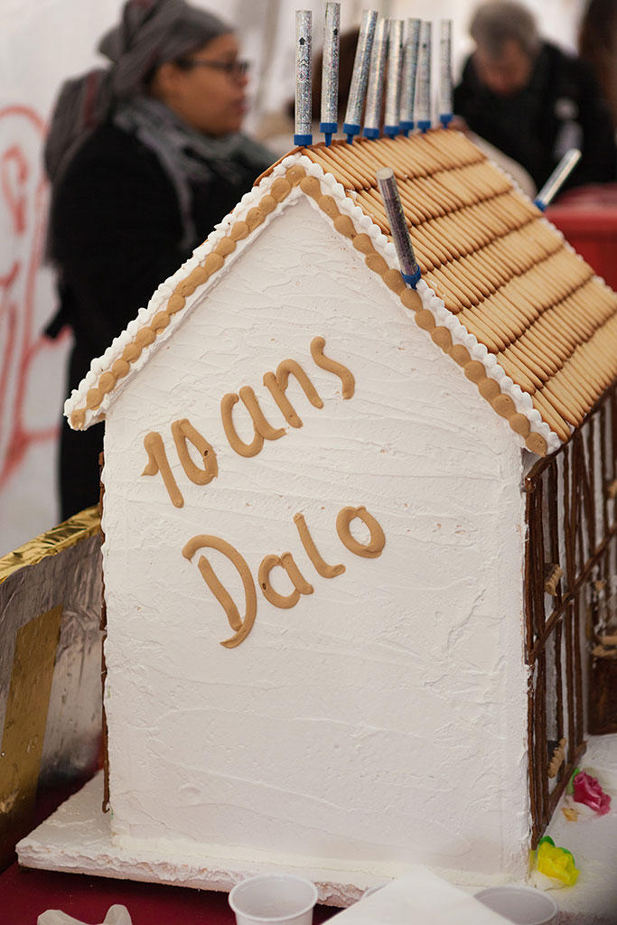 Manifestation nationale pour les 10 ans de la Loi DALO. Le gateau des 10 ans. 5 mars 2017.