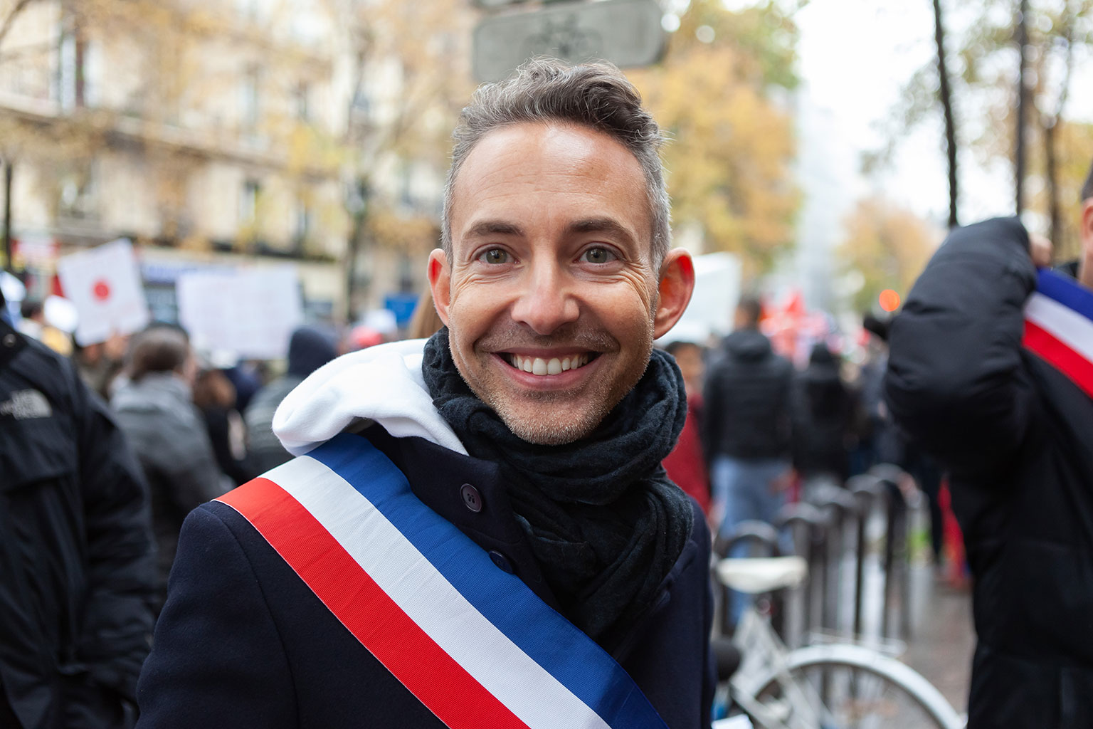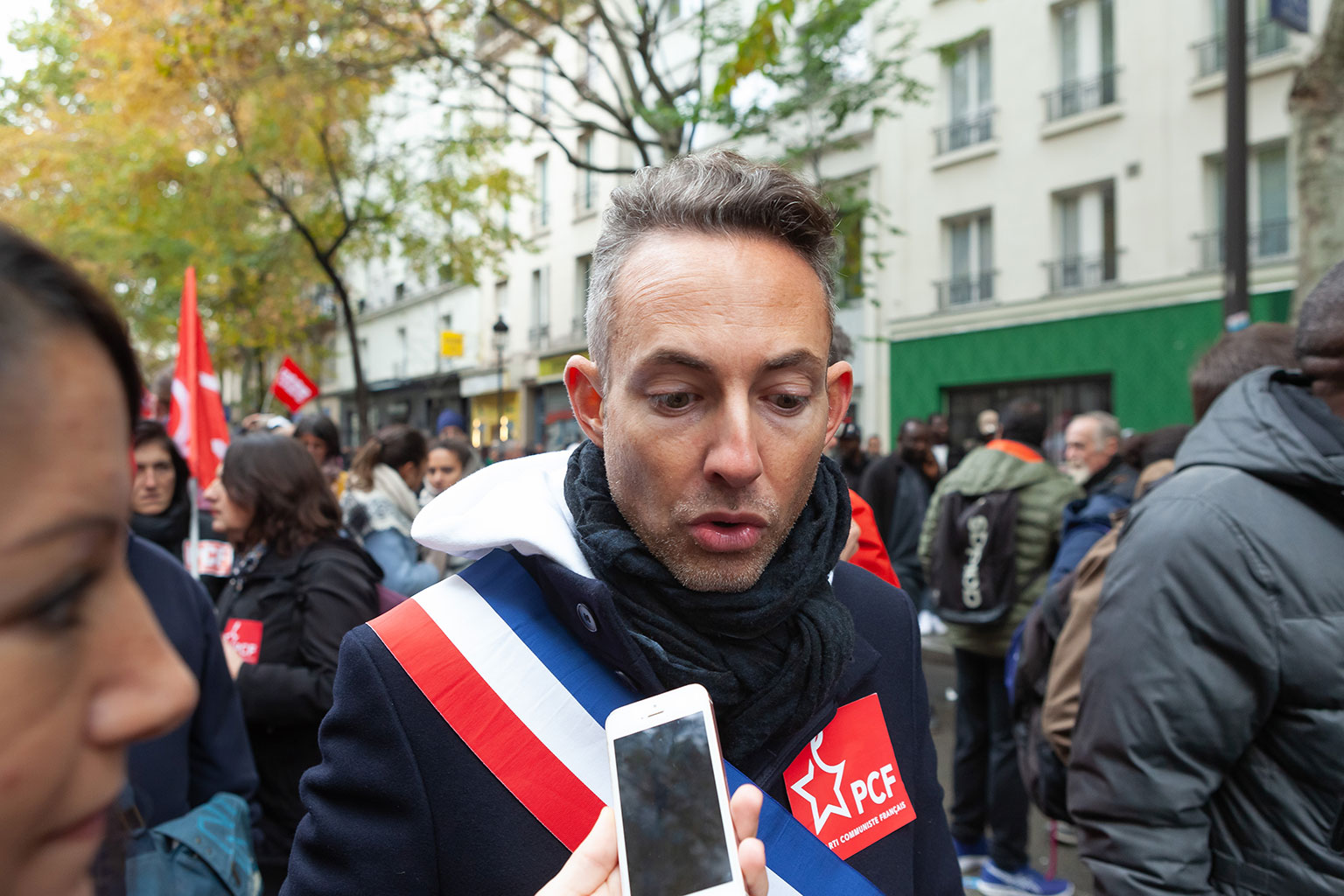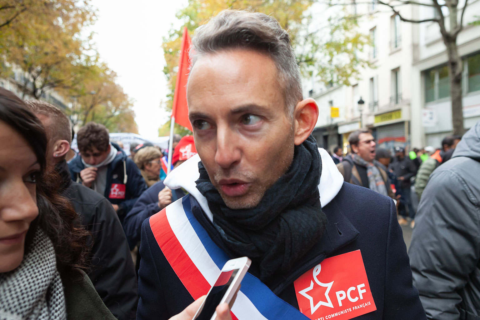 Ian Brossat, PCF, adjoint au logement de la ville de Paris, co-signataire de la tribune ayant appelée à la participation à la Marche « contre l’islamophobie », ici lors de cette marche, organisée par Madjid Messaoudene, Taha Bouhafs, le CCIF (proche des Frères Musulmans) aujourd’hui dissous, Youcef Brakni, ex membre des Indigènes de la République, comme sa femme, Fatima Ouassak, Islam et Info, organe d’information des frères musulmans, et d’autres personnalités et organes de la mouvance islamiste, avec le soutien de très nombreuses personnalités, syndicalistes et partis politiques de Gauche (France Insoumise, EELV, PCF, Générations, Ligue des Droits de l’Homme, CGT, etc.).