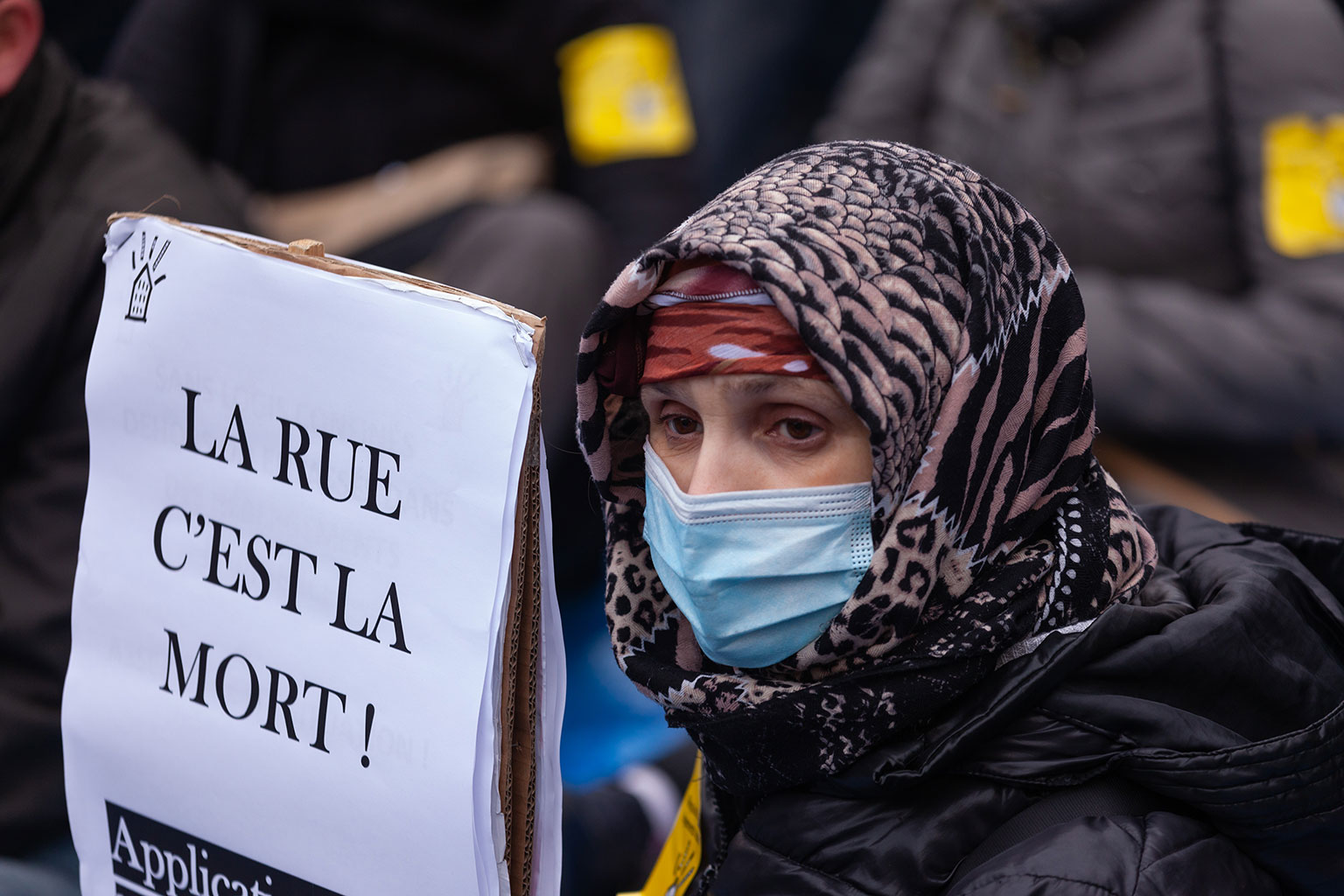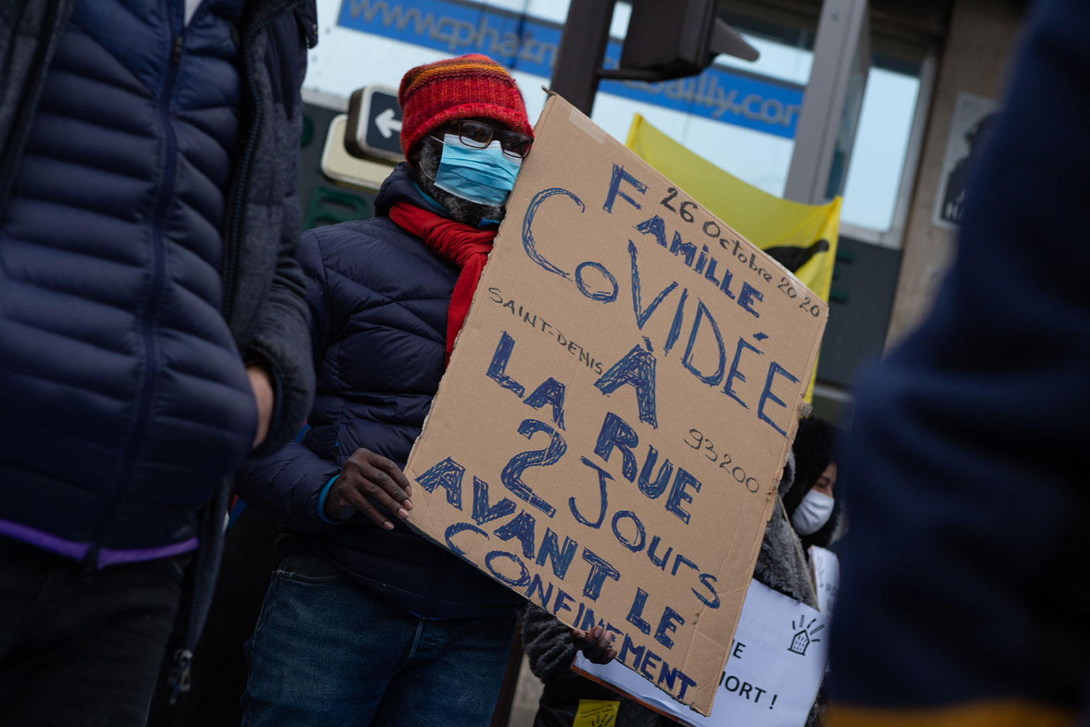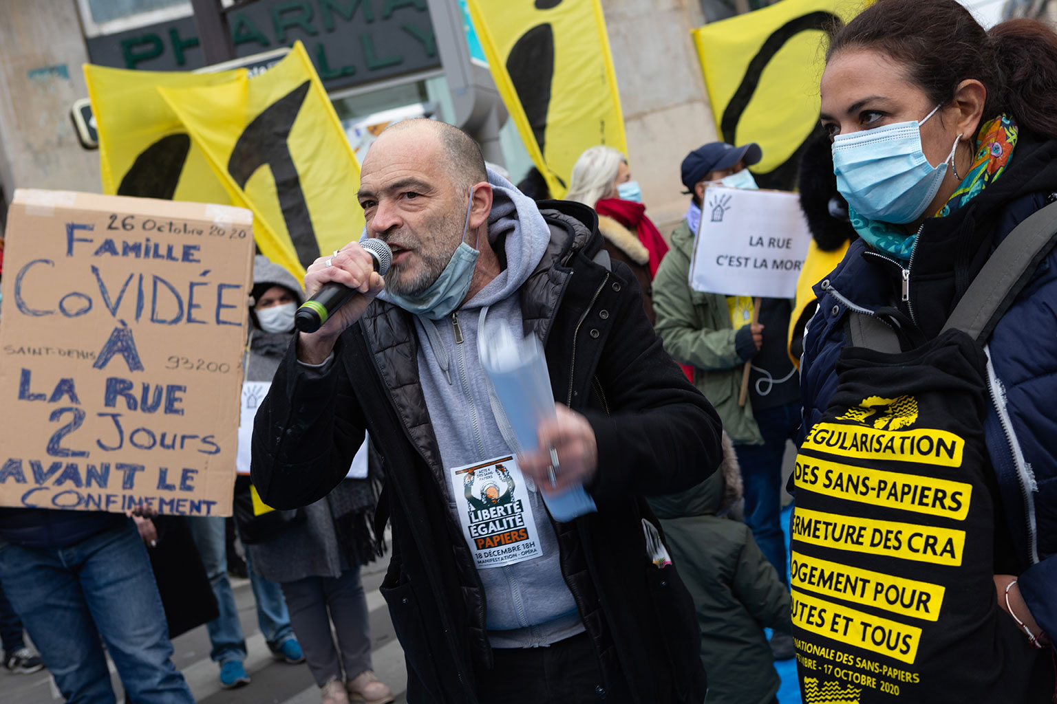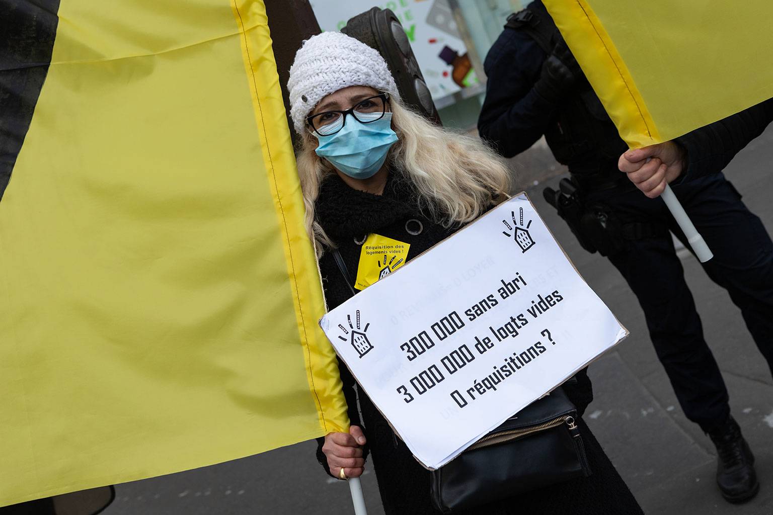 Ce rassemblement se tenait une nouvelle fois pour réclamer la réquisition d’un immeuble entier, vide, ainsi que tous les logements vides à Paris, en Île-de-France, et en France, qui seraient en nombre suffisants pour loger toutes les personnes sans domiciles fixes ou sans-abris.