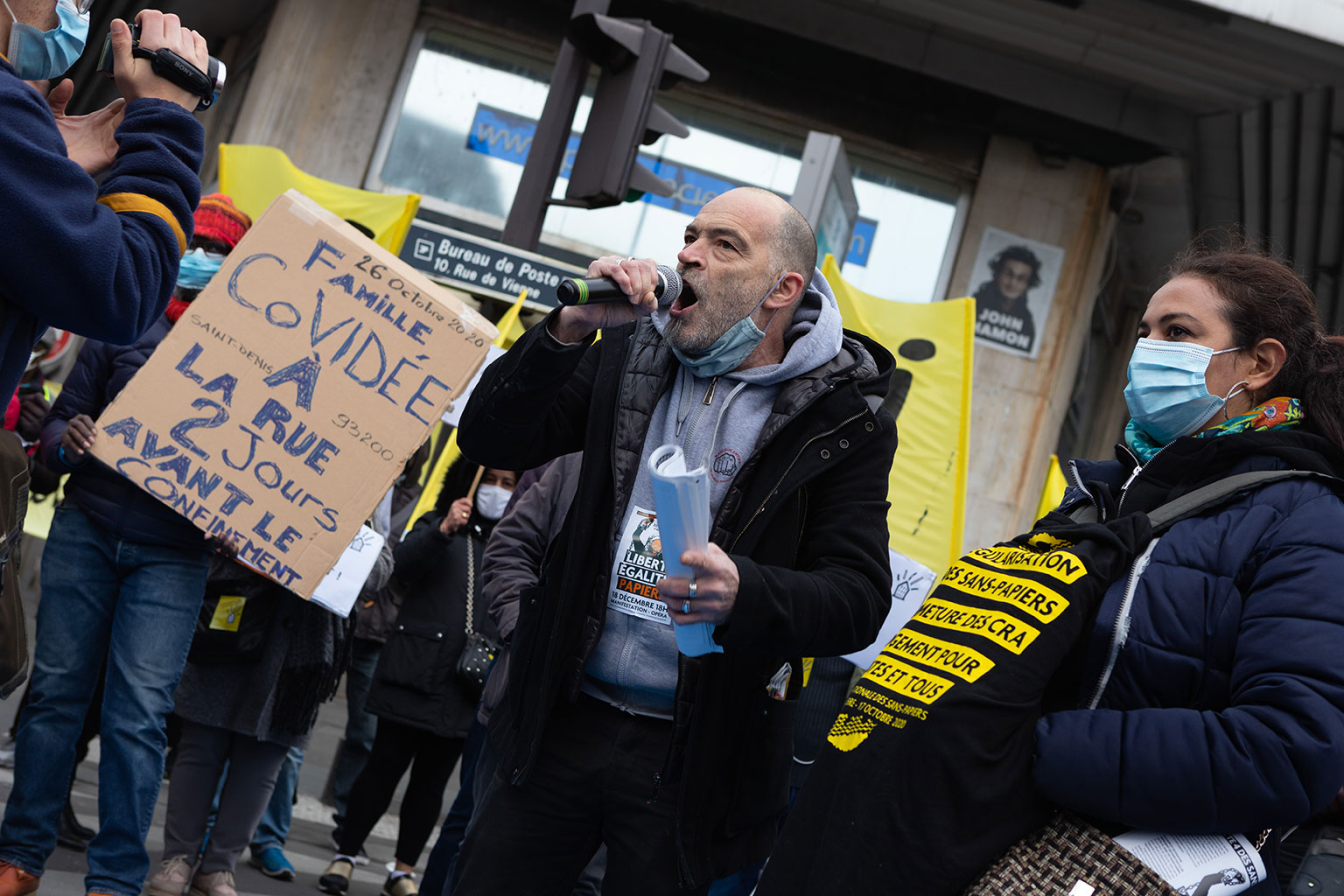 Rassemblement des réquisitions organisé par le DAL. Avec leur porte-parole, Jean-Baptise Eyraud, dit « Babar ». Etaient présents également des personnes représentantes de collectifs de sans-papiers.
