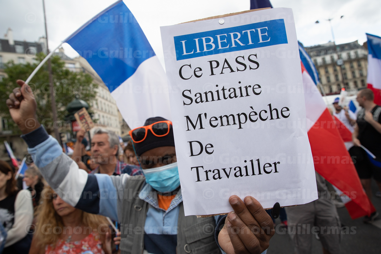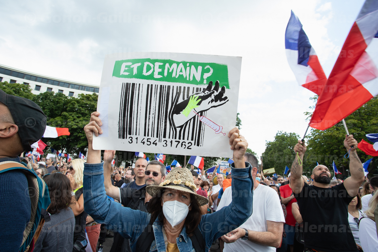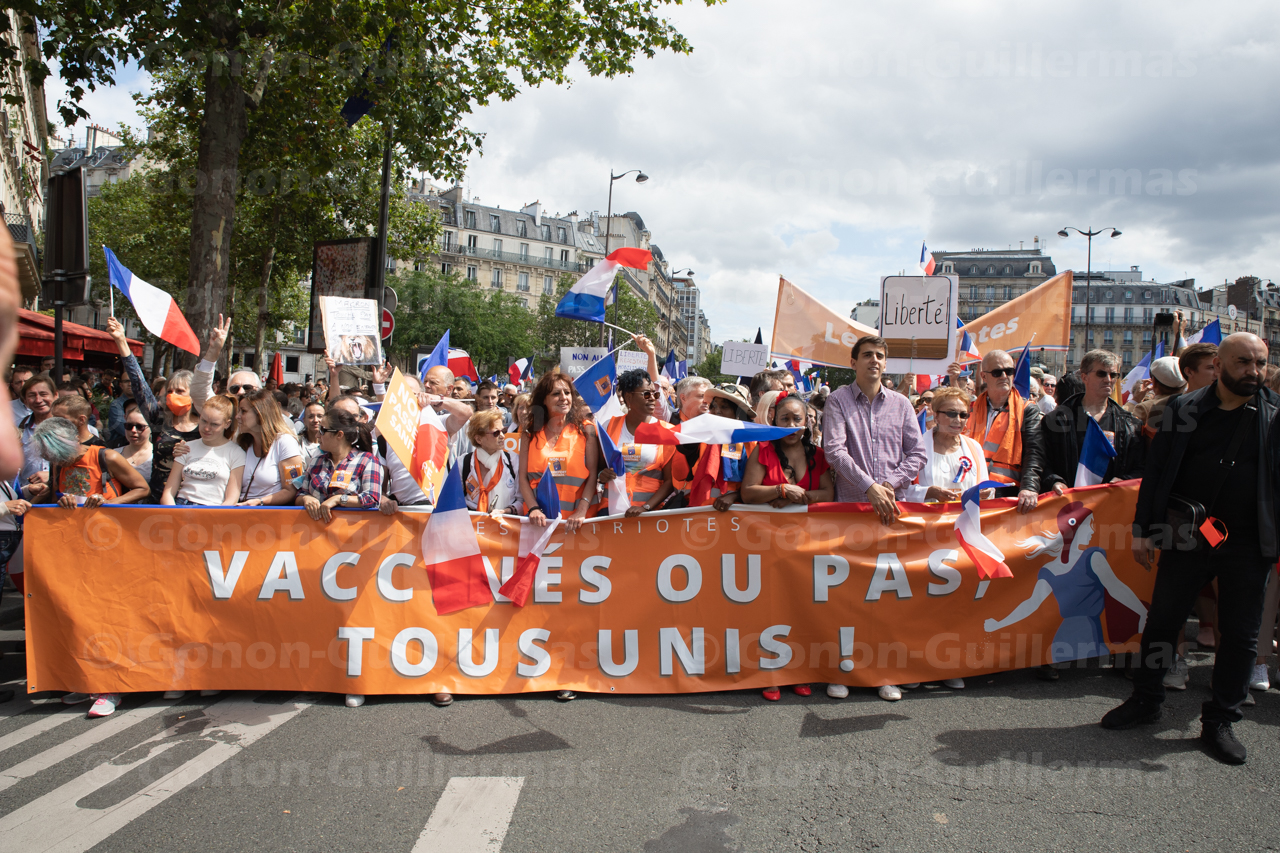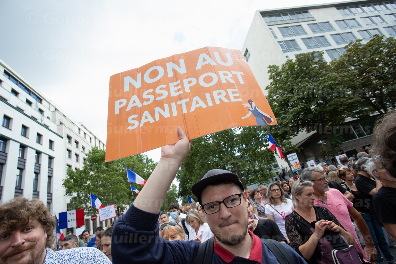Manifestation contre le passe sanitaire, organisée par « Les Patriotes » de Florian Philippot, avec Florian Philippot, à Paris, le 31 juillet 2021.