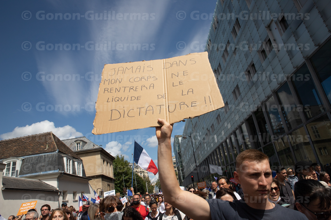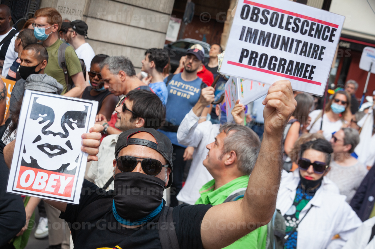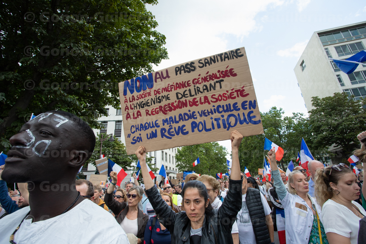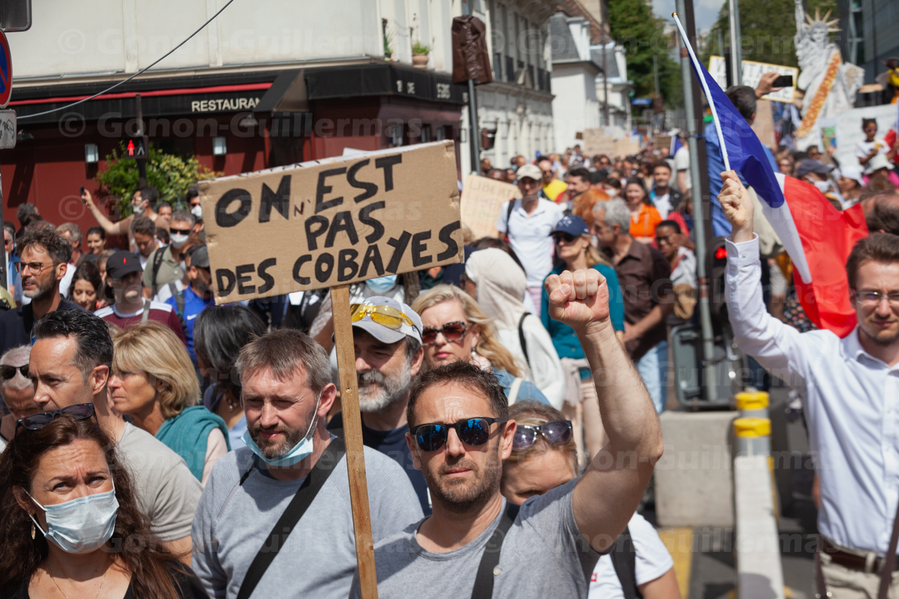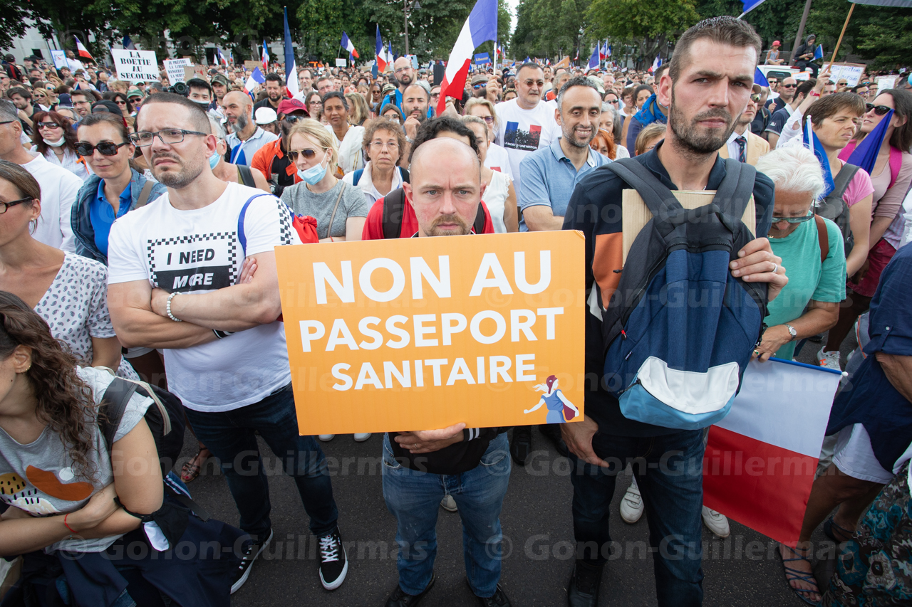 Manifestation contre le passe sanitaire, organisée par « Les Patriotes » de Florian Philippot, avec Florian Philippot, à Paris, le 31 juillet 2021.