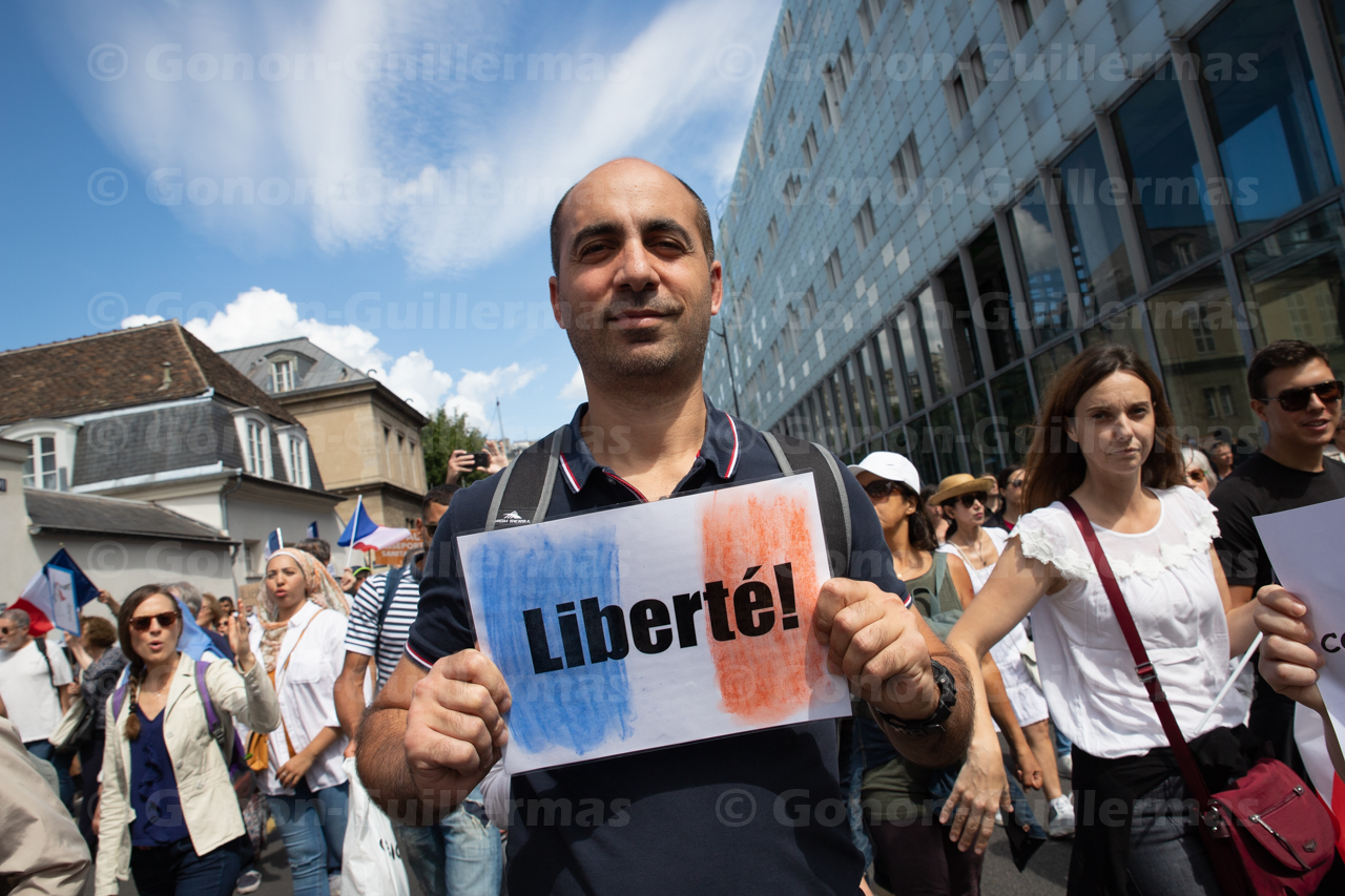 Manifestation antipass, organisée par « Les Patriotes » de Florian Philippot, avec Florian Philippot