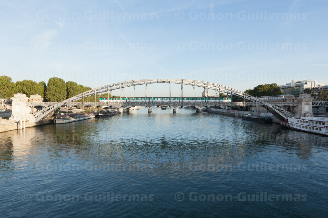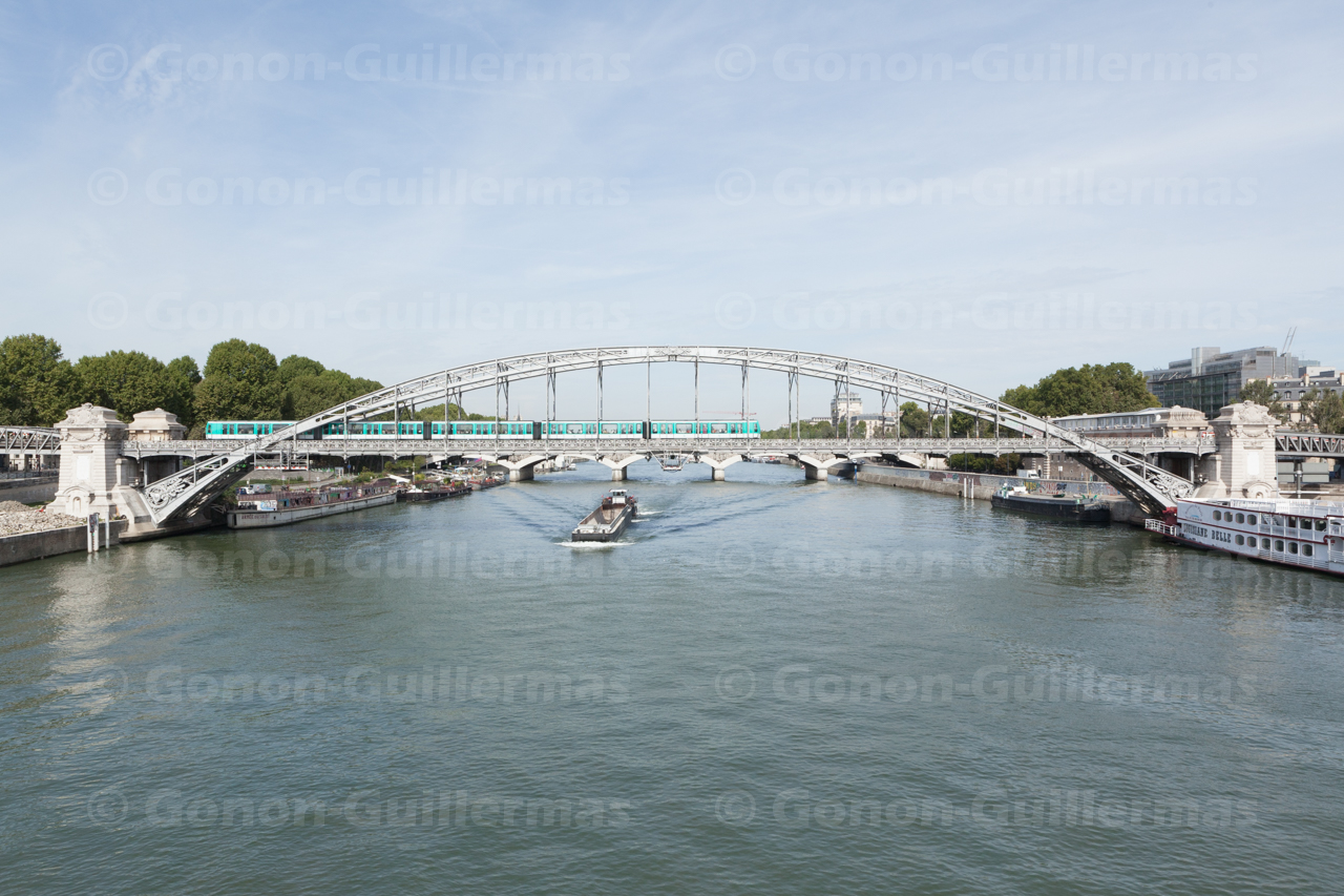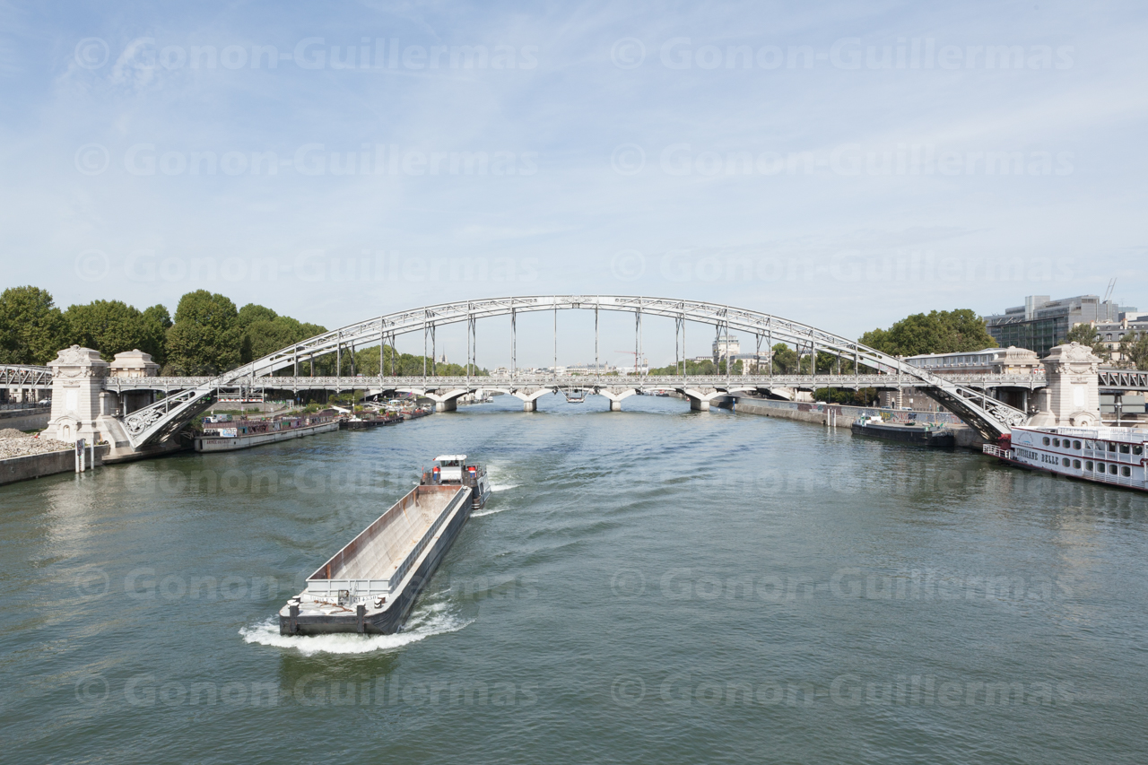 Viaduc d’Austerlitz, Paris, le 30 août 2011. Transport fluvial passant sous le viaduc, sur la Seine.