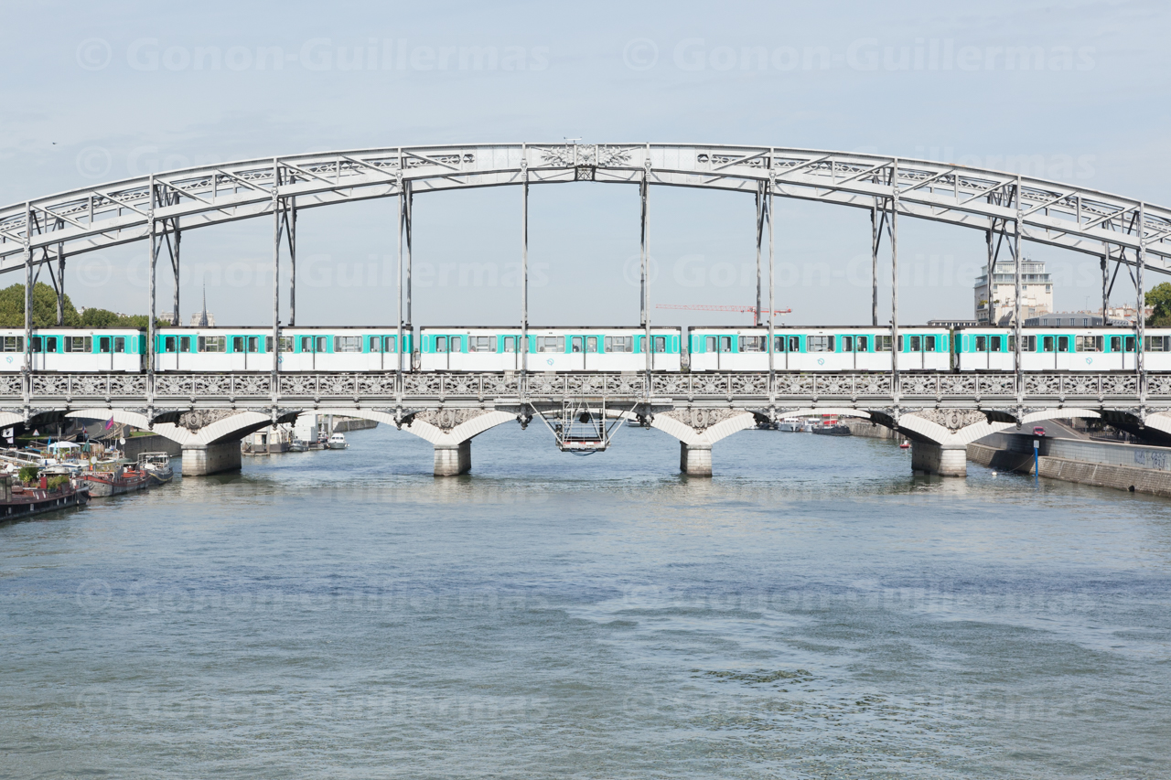 Viaduc d’Austerlitz, Paris, le 30 août 2011. Rame de métro aérienne n° 10 passant sur le viaduc.