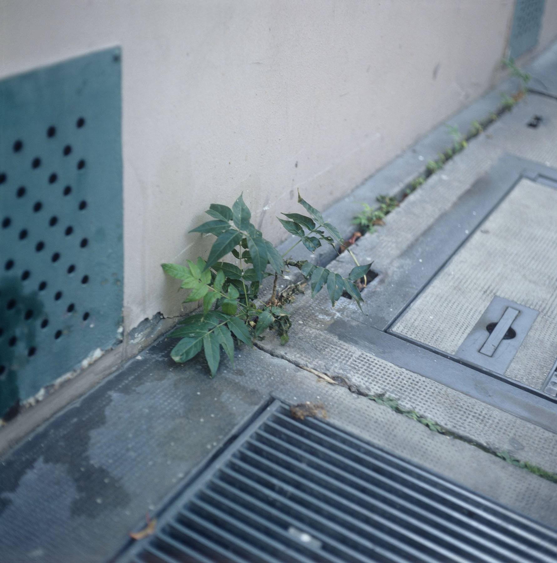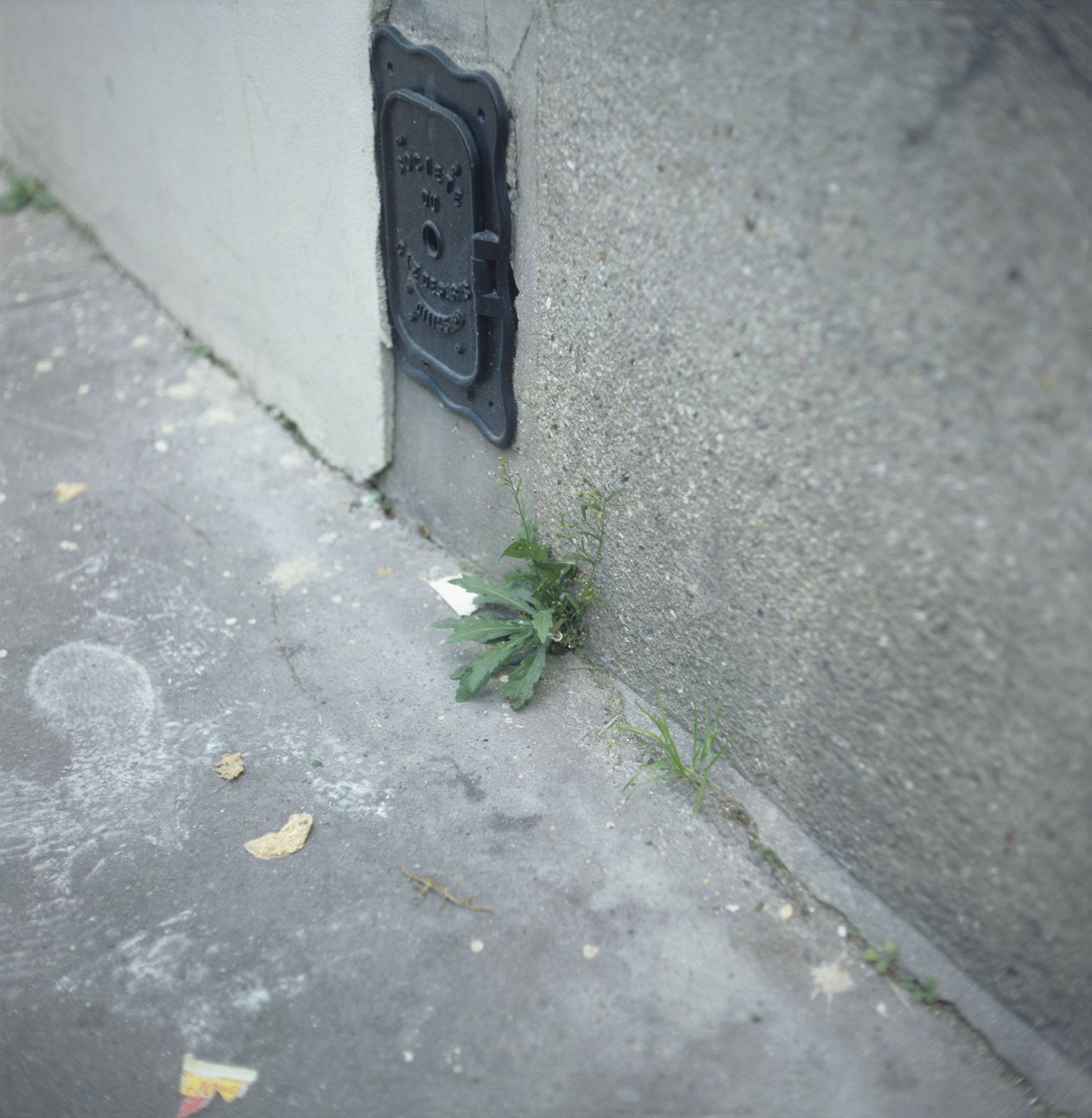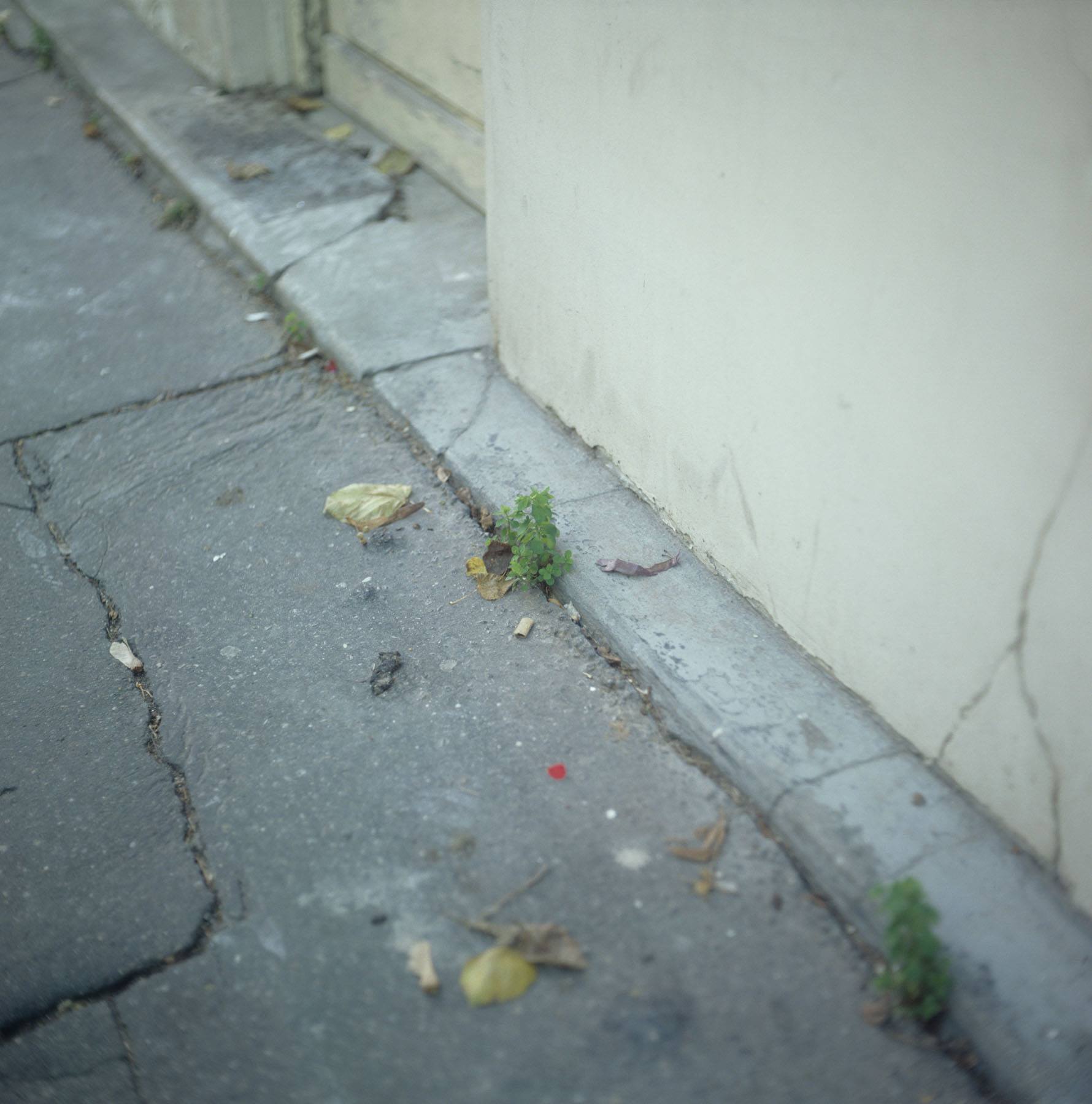Cette série de photographie a été réalisée dans les rues de Paris, dans des conditions proches du marcheur quotidien qui se meut, aveugle à ce qui l’entoure, et tout particulièrement à ces herbes non voulues, ces adventices, que le cantonnier, sur ordre, va chasser dès que possible, et qui sont devenues, en quelque sorte, les seuls bouts de nature « sauvage » auxquels nous avons encore affaire, prisonnier de la métropole où le lien à la nature, à son cycle, s’est perdu et est devenue pur construction mentale, déconnecté.