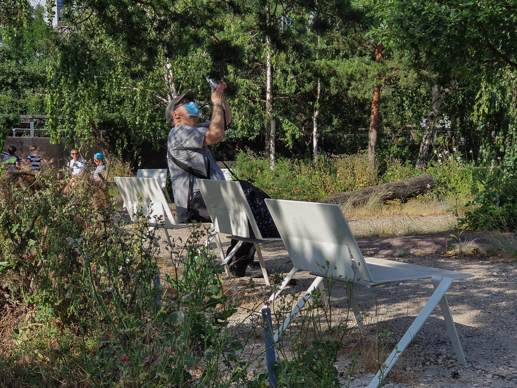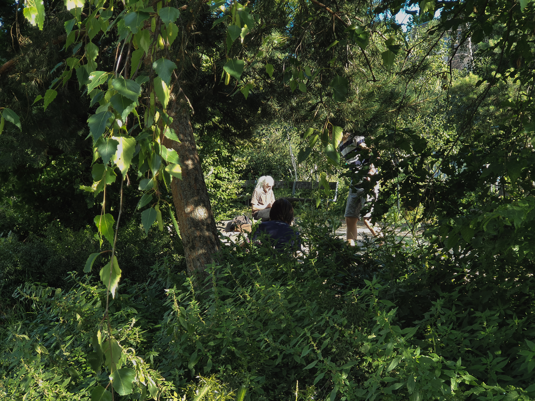 Cette petite série photographique a été réalisée le samedi 30 mai et le dimanche 1er juin 2020, les deux premiers jours de réouverture des parcs et jardins de la Ville de Paris, après le premier confinement Covid, dans le magnifique le Jardin paysagé Anna Marly, dans le 14e, conçu par le studio multidisciplinaire Arpentère. Il s’agit d’un jardin sur dalle, en couverture du périphérique. Les jardiniers n’étaient pas encore repassés. Les herbes étaient immenses et dépassaient largement le mètre de hauteur. Tout, partout dans le jardin était envahi par les herbes. Le public habituel du jardin était là ; les membres du jardin partagé, les lecteurs, les familles et leurs enfants, des maîtres et leurs chiens, des voisins qui viennent profiter du soleil après leurs courses du weekend. Tous venaient goûter à la liberté retrouvée.