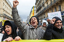 Mainfestation nationale pour les 10 ans de la Loi DALO (Droit Au Logement Opposable) co-organisée par le DAL, le Secours Catholique - Caritas France, la Fondation Abbé Pierre, le RESEL (REseau Stop aux Expulsions de Logement), l'ACDL et le CAL Paris 18e. Cortège de la place de la République au Conseil Constitutionel. France, Paris, 5 mars 2017 Avec Christophe Robert, Jean-Baptiste Eyraud, Benoît Filippi.
