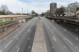 Le périphérique parisien, au tout début du confinement du fait du Covid 19, le 3 mars 2020. Cette totale absence de voitures, par moment, ne dura que quelques jours. 7 à 10 jours après le début du confinement, le périphérique retrouvait peu à peu son flot quotidien.