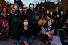 Rassemblement de plusieurs centaines de personnes, place de la Sorbonne, pour l'hommage national au professeur Samuel Paty, enseignant au collàge du Bois d'Aulne, à Conflans-Sainte-Honorine (Yvelines), décapité le vendredi 16 octobre 2020 pour avoir montré en classe des caricatures du journal Charlie Hebdo, par un jeune islamiste Tchétchene de 18 ans.